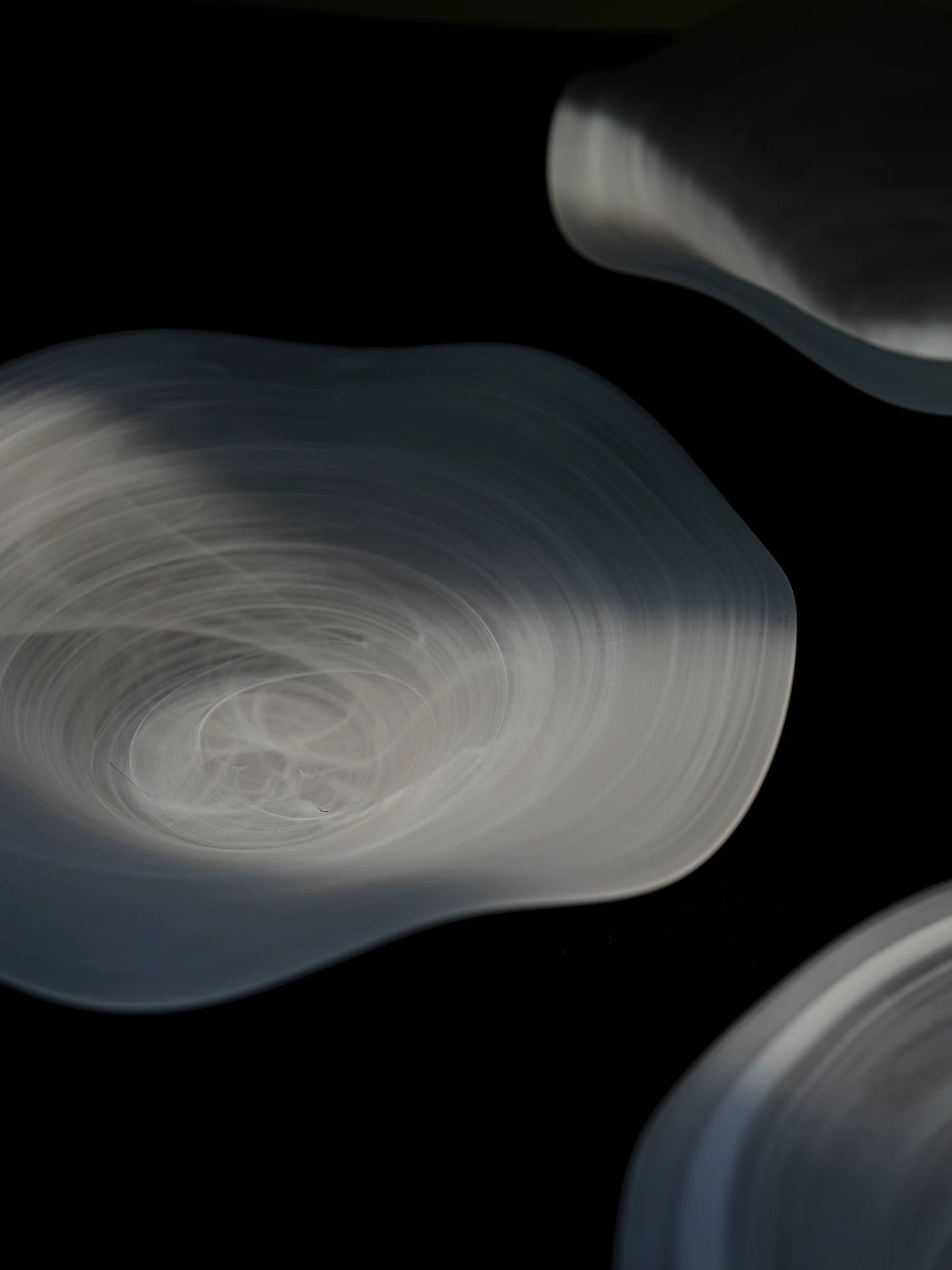 The soft, cloudy swirls remind us of morning light through a window, or steam rising from a warm bowl.